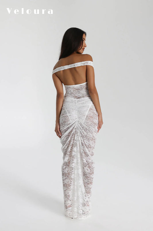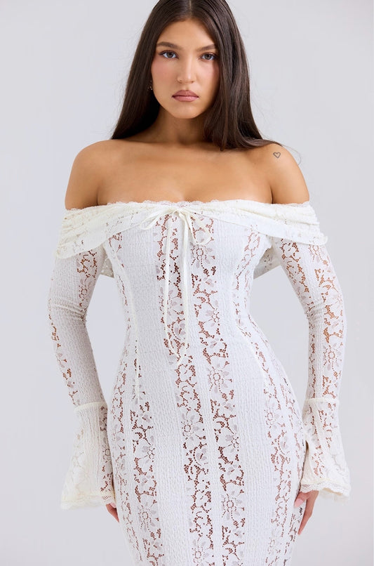 Veloura™ Ivory Off Shoulder Maxi Dress